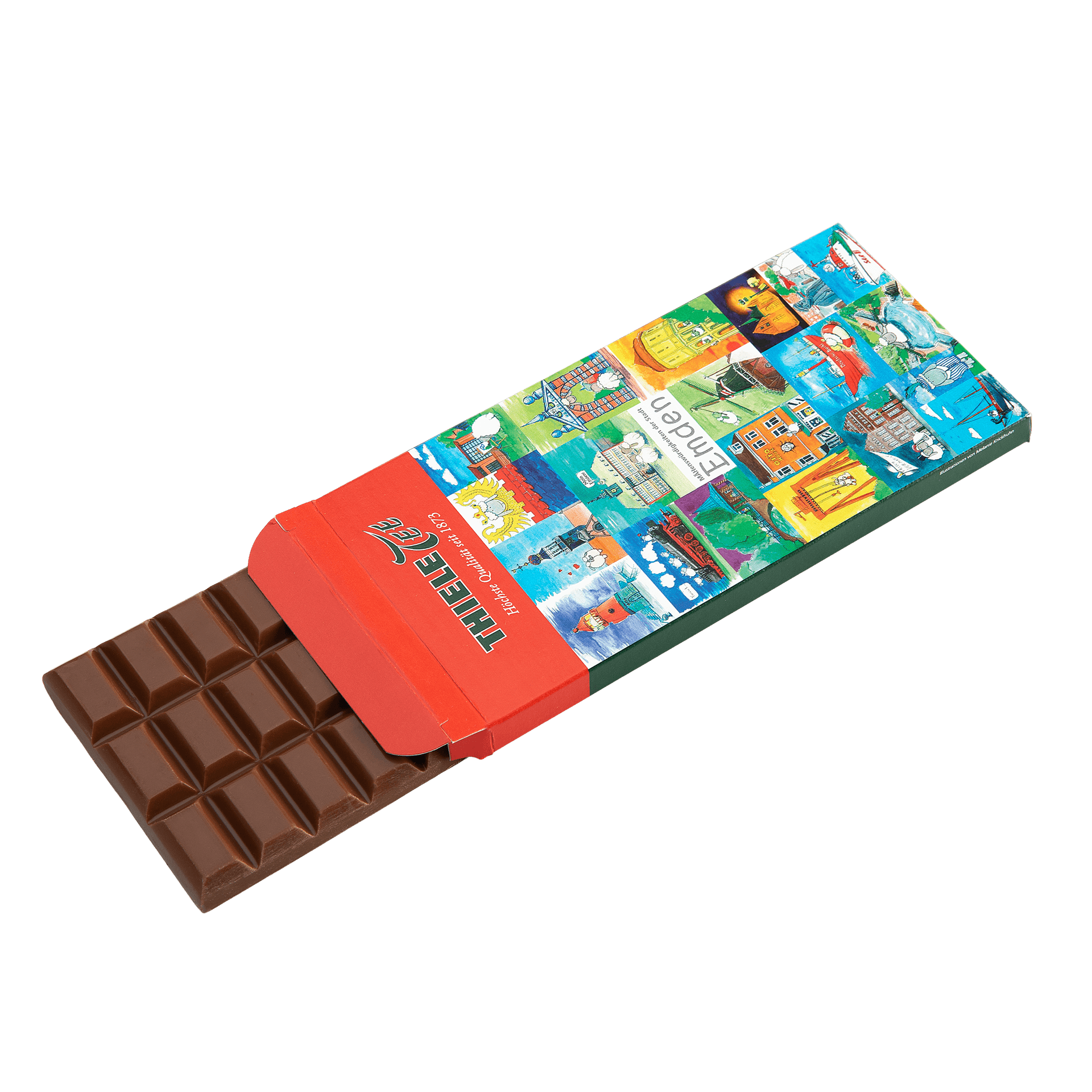 Feine Tafelschokolade mit einem liebevoll gestalteten Emder Motiv. Mit 90g Inhalt ist sie nicht nur ein süßer Genuss, sondern auch ein schönes Souvenir oder Geschenk mit Ostfriesland-Charme.